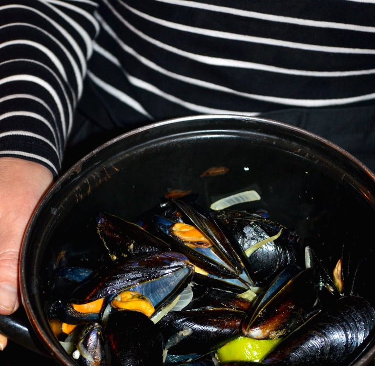 L'incontro con le cozze, alimento povero, abbondante e prelibato delle coste del Mare del Nord fu naturale. Da quel momento, le Moules-Frites sono diventate il simbolo di una convivialità semplice ma raffinata, conquistando prima i bistrot di Parigi e oggi, finalmente, il cuore di Camogli.